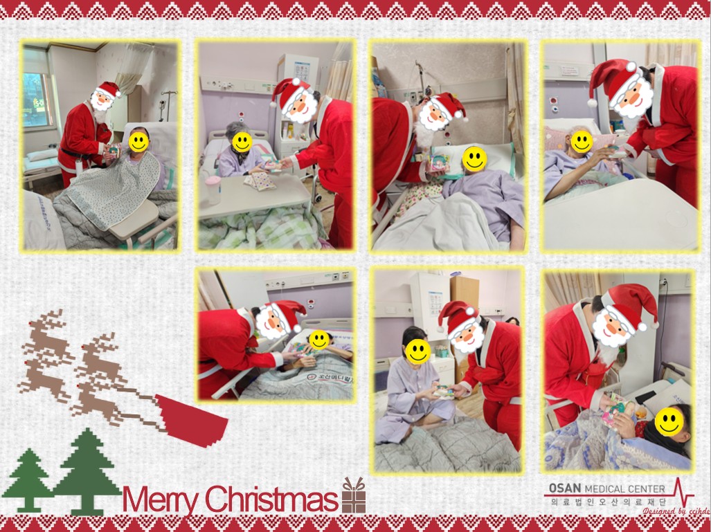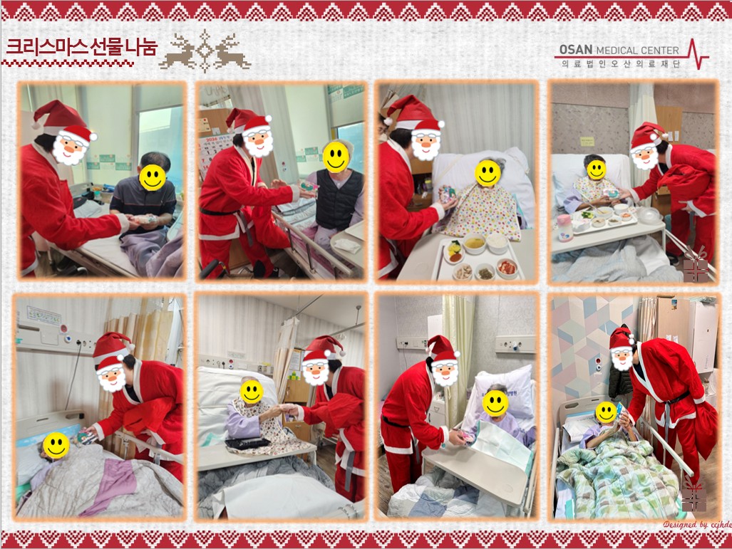 직원들이 모든 환자에게 크리스마스 선물을 전달하였습니다.